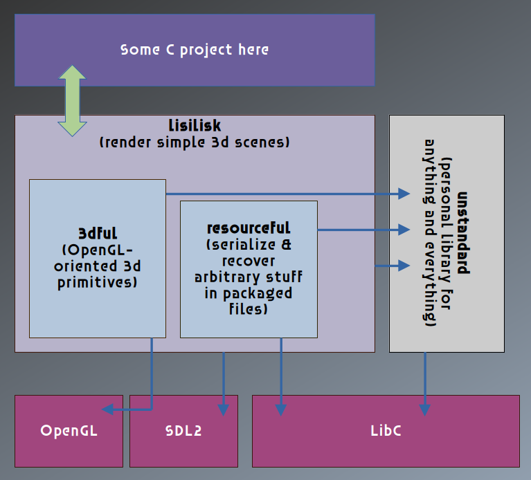 A good chunk of the fun was to create a C library that is friendly to use. It builds upon a sizeable experience in C development so the flow of loading/unloading objects you might need (vertex geometries, shaders...) is seamless.